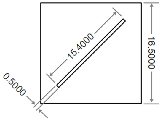 Schematic diagram of the flat membrane module with a diagonal channel for the air flow (dimensions in cm).