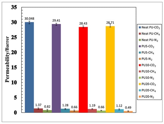 | Neat | Polyurethane | 30.05 Barrer | 21.93 | 36.64 | [89] |
