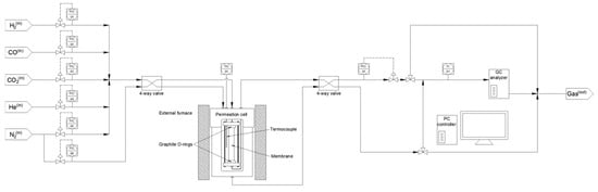 Schematic representation of the equipment used for permeation experiments at high temperatures.