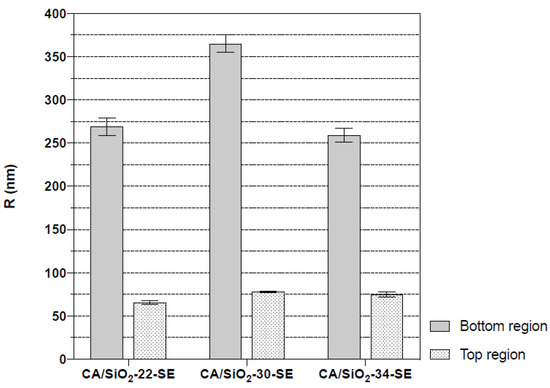 Average cavity radius of CA/SiO2-SE membranes in a region near the membrane’s bottom and close to the membrane’s top active layer.
