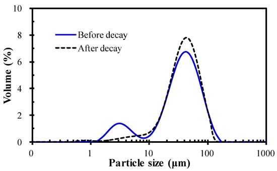 Figure 4. PSD of the microalgae in the MPBR before and after decay.