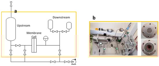 Gas permeation tests using nitrogen and carbon dioxide were conducted using a variable pressure/constant volume permeation setup, as shown in Figure 3. Details on the permeation test can be found in a previous publication [13,14].