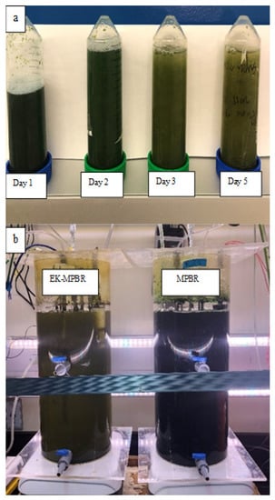 Several studies on MPBR have been conducted by various research groups with different microalgae species and MPBR configurations [,,,]. These studies have demonstrated the advantages of MPBR systems for nutrient removal and microalgae biomass production compared to the conventional microalgae system [].