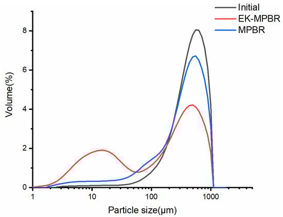 Particle size distribution of the floc suspension in the MPBR and EK-MPBR.