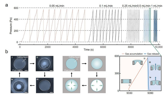 - Sheng, Z.; Wang, H.; Tang, Y.; Wang, M.; Huang, L.; Min, L.; Meng, H.; Chen, S.; Jiang, L.; Hou, X. Liquid gating elastomeric porous system with dynamically controllable gas/liquid transport. Sci. Adv. 2018, 4, eaao6724. [Google Scholar] [CrossRef] [Green Version]