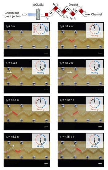 - Liu, W.; Wang, M.; Sheng, Z.; Zhang, Y.; Wang, S.; Qiao, L.; Hou, Y.; Zhang, M.; Chen, X.; Hou, X. Mobile liquid gating membrane system for smart piston and valve applications. Ind. Eng. Chem. Res. 2019, 58, 11976–11984. [Google Scholar] [CrossRef]