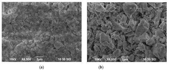 The morphology of the green EPD coatings deposited on the Ni-foil substrate (80 V, 1 min) is shown in Figure 4.