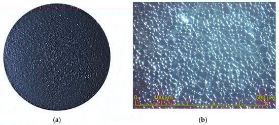 Surface of the BCS-CuO/SDC electrolyte layer after sintering at a temperature of 1450 °C for 5 h on the NiO-BCS-CuO anode substrate (BCS-3 sample): (a) the sample appearance (photo image without enlargement); (b) optical image.