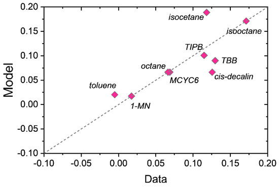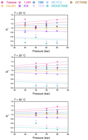 Equations (9) and (11) summarize the DGRPT approach. It is an alternative realization of NETGP, in which the theoretical closure Equation (11) is used in place of the empirical closure Equation (10). The major benefit of Equation (11) over Equation (10) is in its application to dilating mixtures. Equation (11) provides a closed framework without the need to make additional assumptions. This allows for applications to complex liquid mixtures over a wide range of conditions.