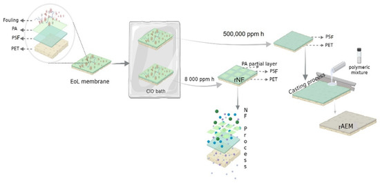 - Lejarazu-Larrañaga, A.; Molina, S.; Ortiz, J.M.; Navarro, R.; García-Calvo, E. Circular Economy in Membrane Technology: Using End-of-Life Reverse Osmosis Modules for Preparation of Recycled Anion Exchange Membranes and Validation in Electrodialysis. J. Membr. Sci. 2020, 593, 117423. [Google Scholar] [CrossRef]
