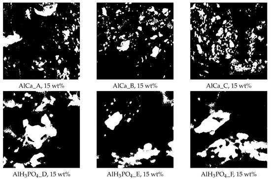 - The observed amount of polymer matrix , which is defined as the ratio of the polymer matrix area visible in the picture (black regions) to the total image area,