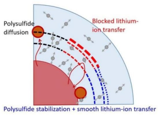 - Li, G.; Wang, S.; Zhang, Y.; Li, M.; Chen, Z.W.; Lu, J. Revisiting the role of polysulfides in lithium–sulfur batteries. Adv. Mater. 2018, 30, 1705590. [Google Scholar] [CrossRef] [PubMed]