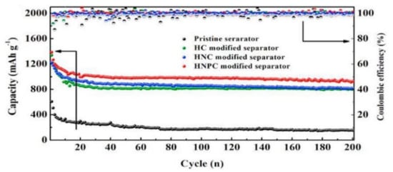 Cycle performance of LSBs using different separators at 0.2 C [42].