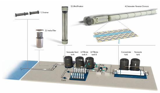 Seawater intake tank—This was an intermediate tank to collect the seawater before ultrafiltration (UF).