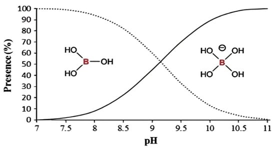 Existence of boron at different pH values. Reprinted with permission from Ref. [32], 2014, Elselvier.