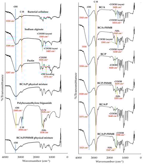 Chanabodeechalermrung, B.; Chaiwarit, T.; Sommano, S.R.; Rachtanapun, P.; Kantrong, N.; Chittasupho, C.; Jantrawut, P. Dual Crosslinked Ion-Based Bacterial Cellulose Composite Hydrogel Containing Polyhexamethylene Biguanide. Membranes 2022, 12, 825. https://doi.org/10.3390/membranes12090825