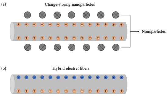 Electret fibers: (a) nanoparticles as an enhancer for charge storage; (b) fully polymeric hybrid.