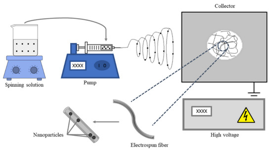 Regarding electrospinning, the addition of nanoparticles to fibers is being studied to confer differentiated properties and increase the applicability of these materials in the field of advanced materials science, due to their remarkably improved thermal, chemical and dimensional stabilities, applicability, electrical conductivity, mechanical, and functional [84].