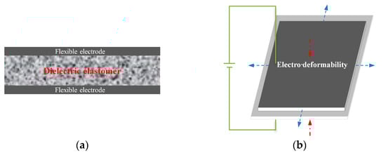 Schematic diagram of the DE actuating unit and its electro deformability. (a) Dielectric elastomer actuator, (b) Principle of electro deformability.