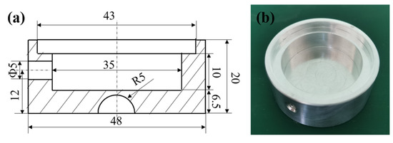 Generally speaking, the structure of an aerostatic bearing is mainly divided into two parts: the bearing body and restrictor. For the design of the bearing body, according to the design drawing shown in Figure 1a, aluminum alloy material was selected to be processed by the lathe into the real object shown in Figure 1b. In the process of preparing the aerostatic bearing, the most significant factor is the preparation of the restrictor. For the restrictor, porous SiC ceramic was used as the restrictor of the aerostatic bearing.