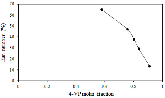 Variation of run number with 4-VP mole fraction in grafting of 4-VP/1-VIm mixtures onto ETFE film.