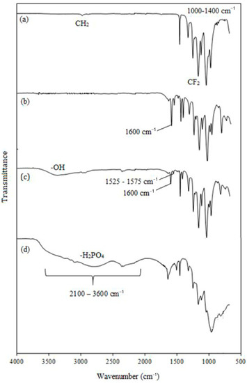 FTIR measurements were performed on PA-doped membranes in comparison with pristine ETFE film and grafted samples using a Perkin Elmer-Spectrometer (2000 Explorer) in a transmission mode in the frequency range of 500–4000 cm−1 at a scanning rate of 16 with a resolution of 4 cm−1.