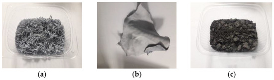 Images of the samples of the chromium tannery waste in the form of (a) shavings, (b) cuttings, and (c) dust.