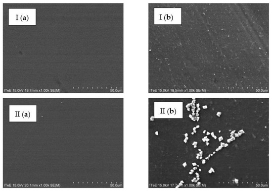 Images of the surface of the (I) TS40 and (II) DL membranes before (a) and after (b) nanofiltration of the liquid fraction created as a result of the thermal pressure hydrolysis of chromium waste from tanneries, pre-treated using microfiltration, taken with SEM (magnification: ×1000).