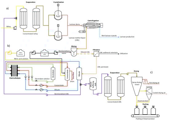 - Merkel, A.; Vavro, M.; Ondrušek, M.; Voropaeva, D.; Yaroslavtsev, A.; Dvořák, L.; Stulac, M.; Bauer, S.A.W. Lactose mother liquor stream valorisation using electrodialysis. Int. Dairy J. 2021, 121, 105102. [Google Scholar] [CrossRef]
