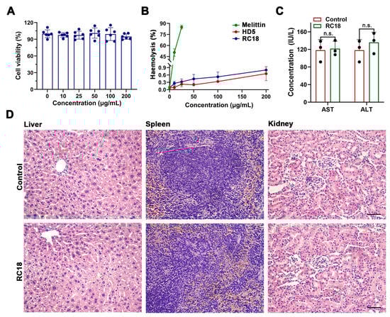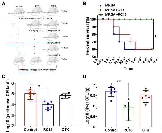 3.6. In Vivo Antibacterial Evaluation of RC18