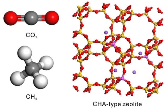- Krishna, R.; van Baten, J.M.; Garcia-Perez, E.; Calero, S. Diffusion of CH4 and CO2 in MFI, CHA and DDR zeolites. Chem. Phys. Lett. 2006, 429, 219–224. [Google Scholar] [CrossRef]