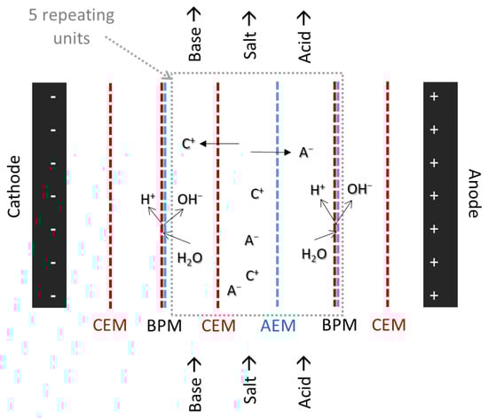 Schematic of membrane configuration and separation mode in the EDBM membrane stack.