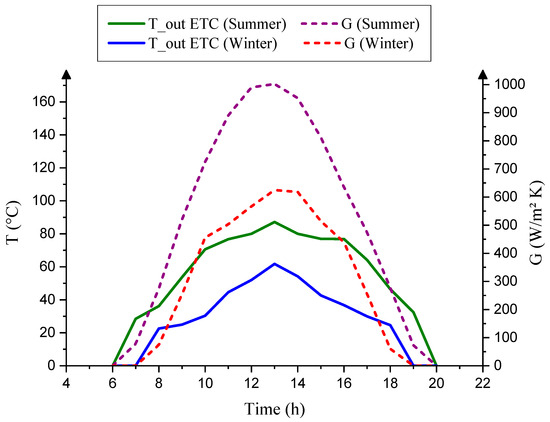 The thermostatic heating bath has an electrical power that reaches 1.5 KW. Therefore, the solar thermal system was simulated using solar energy for the AGMD system to save costs. The evacuated tube collector (ETC) was used for heating water in the AGMD system with an area of 2.5 m2 at coordinates 31°15′45″ N and 32°18′22″ E. In the solar thermal system, a heat exchanger has an effectiveness of 0.5. The parameters of ETC are listed in Table 1.