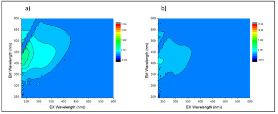 FEEM analysis for (a) untreated and (b) treated water samples collected before chlorination using IPMS.