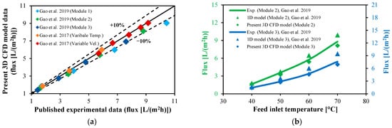 | Reference | Experimental Module | Number of Fibers per Tube | Module Length (mm) | Feed Inlet Temperature (°C) | Feed Inlet Velocity (m/s) |
