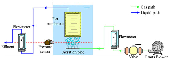 - Braak, E.; Alliet, M.; Schetrite, S.; Albasi, C. Aeration and hydrodynamics in submerged membrane bioreactors. J. Memb. Sci. 2011, 379, 1–18. [Google Scholar] [CrossRef]