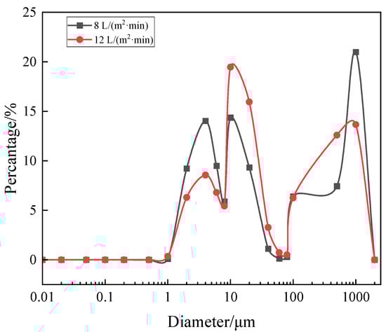 | Aeration Intensity/(L/m2·min) | D [4, 3]/μm | D10/μm | D50/μm | D90/μm |