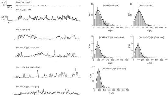 In this work, the ability of hIAPP to incorporate and form ion channels in PLMs composed of POPC after 24 h preincubation at RT in the absence and presence of varying calcium concentrations was evaluated.