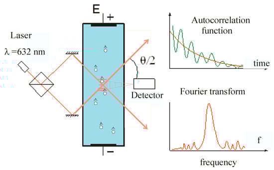 Signal fluctuations are reflected in the shape of the autocorrelation function, which is numerically processed by Fourier transform, and the mobility spectrum of colloidal particles is determined by the frequency scale proportional to the ζ-potential of the particles. It is important to note that the point of intersection of laser beams should be moved to a certain distance from the cell wall, to be located at a stationary plane where, according to the hydrodynamic conditions, the liquid remains stationary and, thereby, the effect of electrodiffusion is eliminated. Unfortunately, the small dimensions of the cell do not allow us to fix this position, which in some devices requires a special measurement procedure for an approximate assessment of the contribution of electrodiffusion. In particular, this circumstance may affect the determination of the point of zero charge of the colloidal particle.