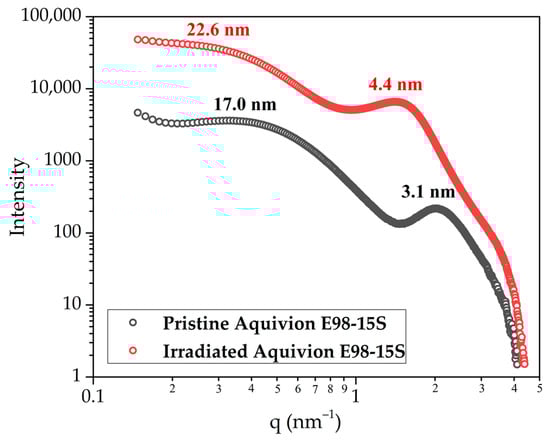 SAXS curves of Aquivion® E98-15S membranes before and after irradiation.