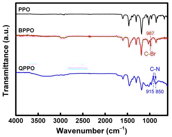 FT-IR spectra of PPO, BPPO, and QPPO.