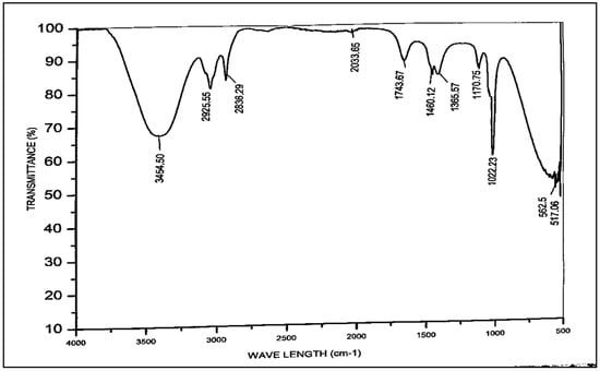 The FT-IR spectrometer (bruker-tensor 27) was used to obtain the infrared spectrum, using a scan rate of 15 at 1 cm−1 and an effective wavelength of 4000–400 cm−1 [42].