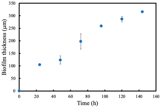 19]. Another study by Matsumoto et al. showed that the nitrogen removal efficiency of an MABR can exceed 70% when the biofilm thickness is between 600 and 1200 μm [