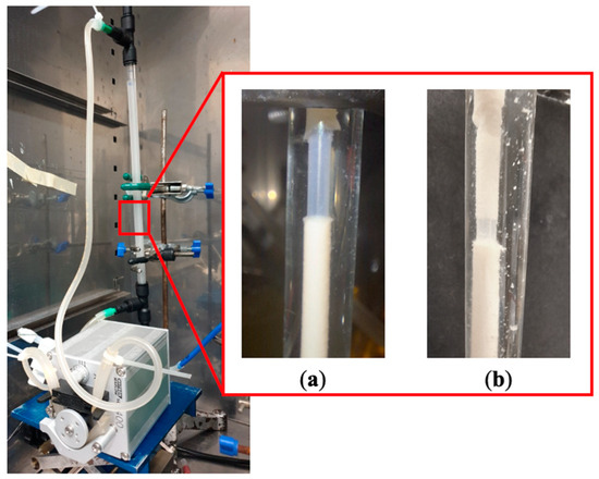 Figure 2). The tubular membrane was potted in a 6 mm nylon tubing using translucent epoxy resin (MG Chemicals, Santa Clara, CA, USA). Membrane biofilm reactor was constructed using a glass column with a 10 mm outer diameter and 8 mm inner diameter with two T-shaped push-in fittings (RS) at the ends. The membrane module with the single PDMS tube was fitted into the glass column by connecting it to the T-shaped push-in fitting with a reducer to fit a 6 mm nylon tubing end. The perpendicular ends of the T-shape push-in fittings were used to connect the liquid inlet and outlet using 6 mm outer diameter Tygon tubing was to minimise possible gas transfer through the tubing. Gas lines were connected to the membrane module using 6 mm nylon tubing. Details of the membrane biofilm reactor are summarised in