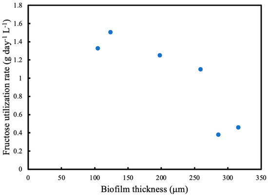 OTR was measured using the pressure drop method every 24 h at different intramembrane pressures and average oxygen uptake rate (OUR) was calculated at different biofilm thicknesses. Residual fructose was determined using a high-performance liquid chromatography (HPLC) system equipped with RID-10A refractive index detector (Shimadzu, Kyoto, Japan) at 50 °C. A total of 20 μL of the sample was injected into the column after the culture supernatant was filtered through Mini-UniPrep syringeless filter devices (Agilent, Santa Clara, CA, USA). The fructose was analysed by Aminex-87H column (Bio-Rad, Watford, UK) at 40 °C. The samples in the column were eluted with 0.014 N H2SO4 at a flow rate of 0.55 mL/min and pressure of 4.3 MPa. A standard curve for fructose was used for quantification. Using the change in residual fructose concentration, fructose utilisation rate was calculated.