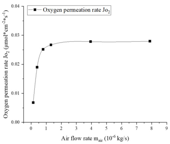 Dependence of the oxygen permeation rate on airflow rate (, ).