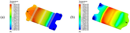 The temperature distribution of the reactor with both air and methane inlet temperature of under adiabatic conditions with an airflow rate of and a fuel flow rate of is shown in Figure 13.