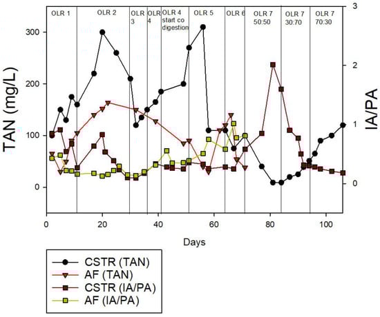 3.2.3. IA/PA Ratio and Total Ammonia Nitrogen at Different OLRs