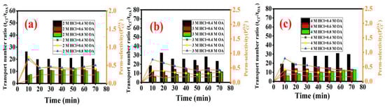 3.2.2. Ratio of Transport Number and Selective Transmittance Coefficient