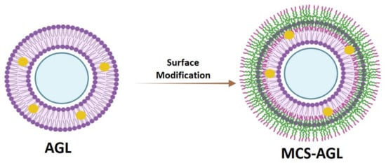 This study aims to prepare and optimize AG-loaded nanoliposomes (AGL) and further modify the surface with mannosylated chitosan (MCS-AGL; Figure 1) to enhance the bioavailability of AG.
